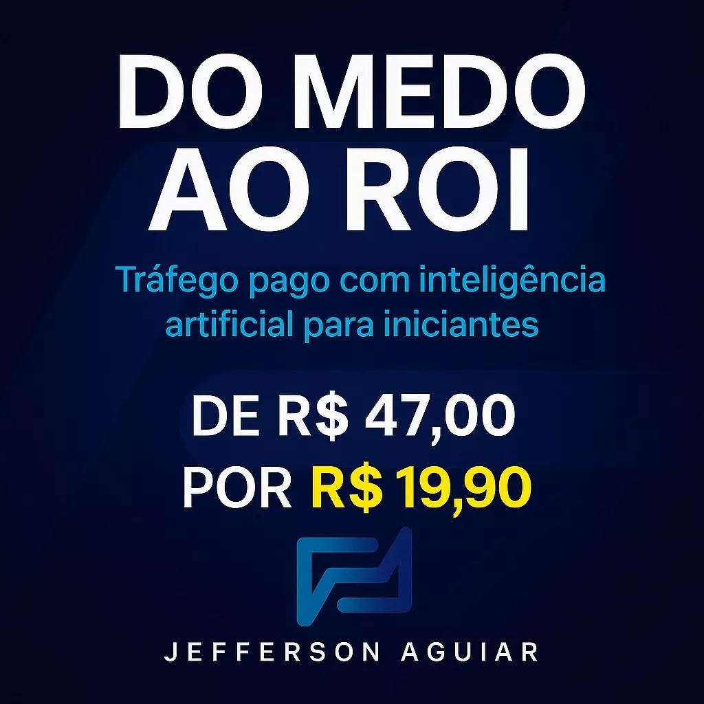 O e-book “Do Medo ao ROI” foi feito para você que quer aprender tráfego pago com segurança, clareza e a ajuda da Inteligência Artificial.